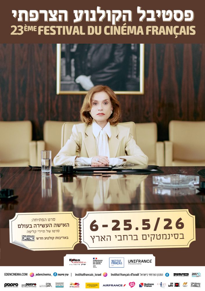 המהדורה ה־23 של פסטיבל הקולנוע הצרפתי תתקיים בין ה־6 ל־25 במאי 2026, בסינמטקים ברחבי הארץ – תל אביב, ירושלים, חיפה, הרצליה, חולון, שדרות ויפו . את הפסטיבל יפתח הסרט “האישה העשירה בעולם” בכיכובה של איזבל הופר, ויחתום הסרט “צבעי הזמן” של סדריק קלאפיש .